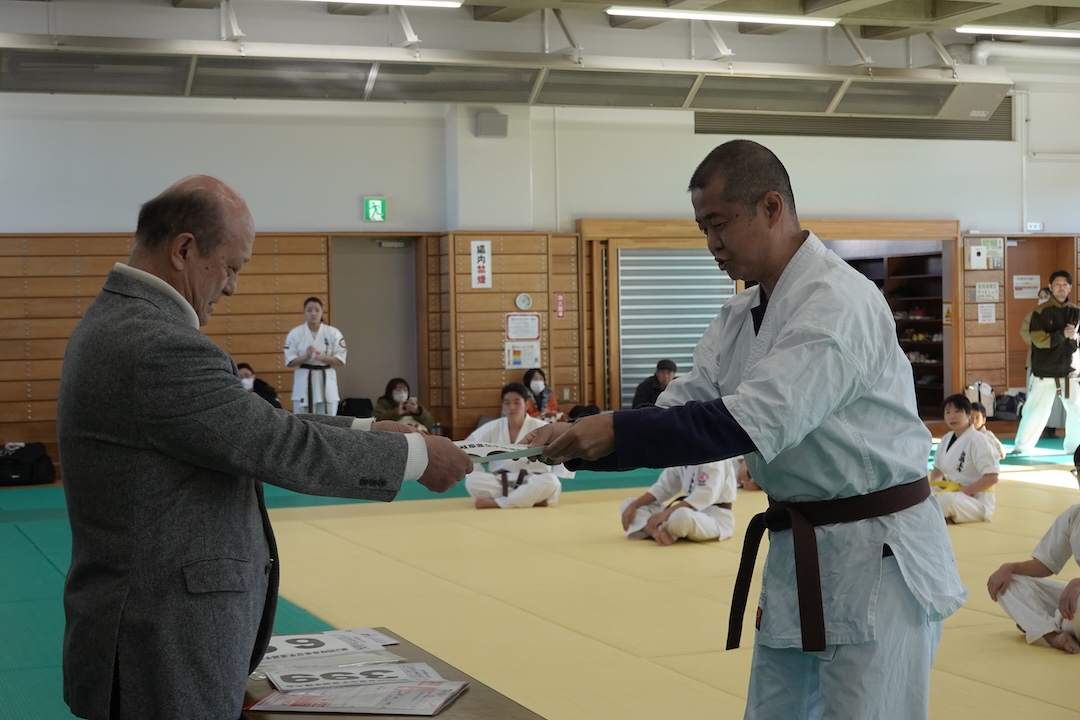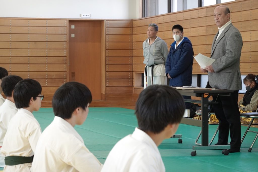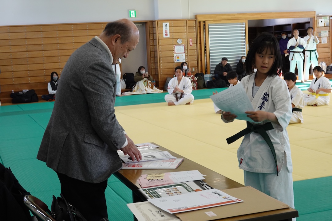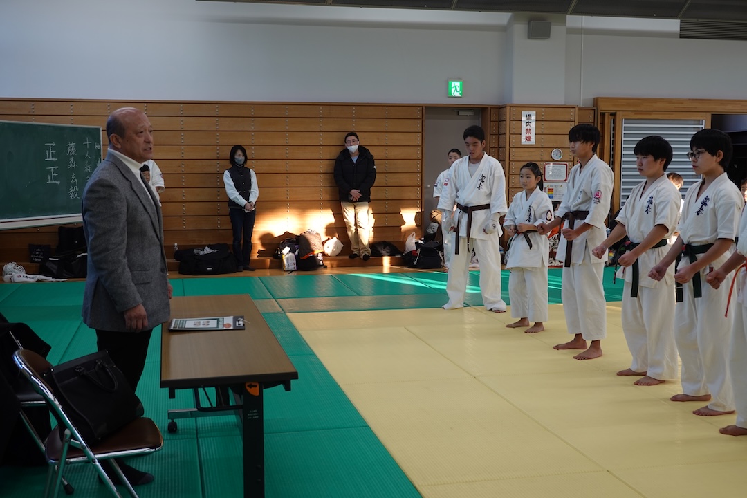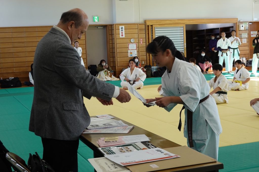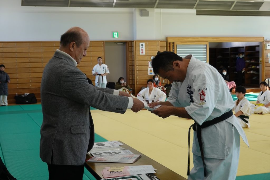 審査に先立ち、来週12/14に開催される岐阜県大会、茨城県大会へ出場する選手たちへゼッケンが渡されました。