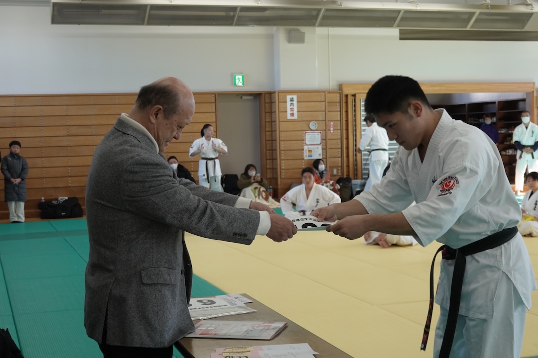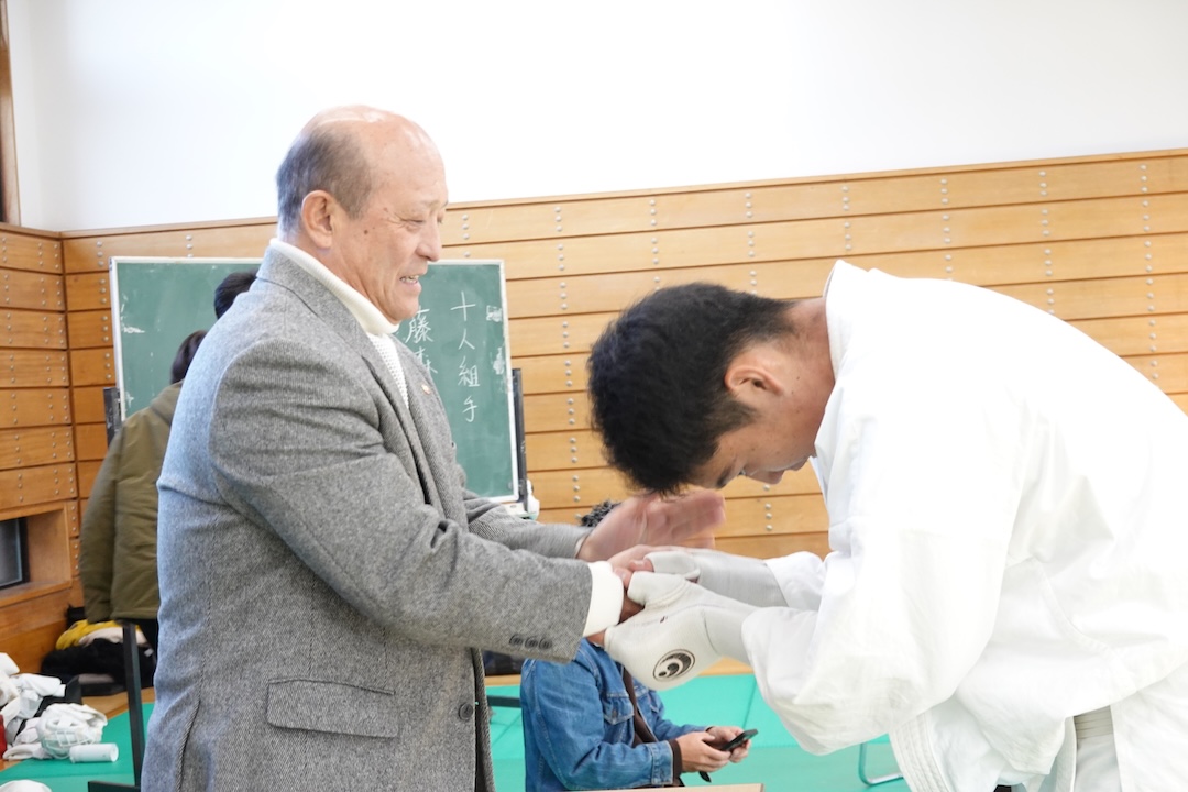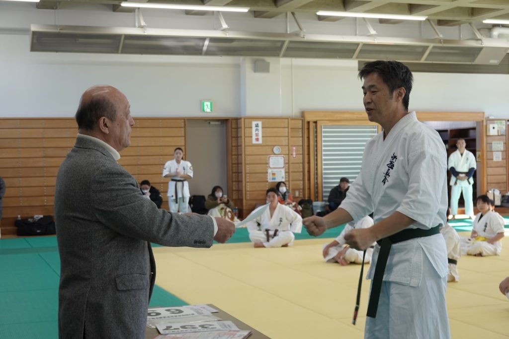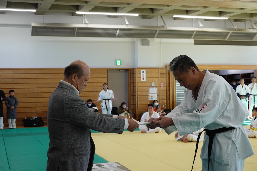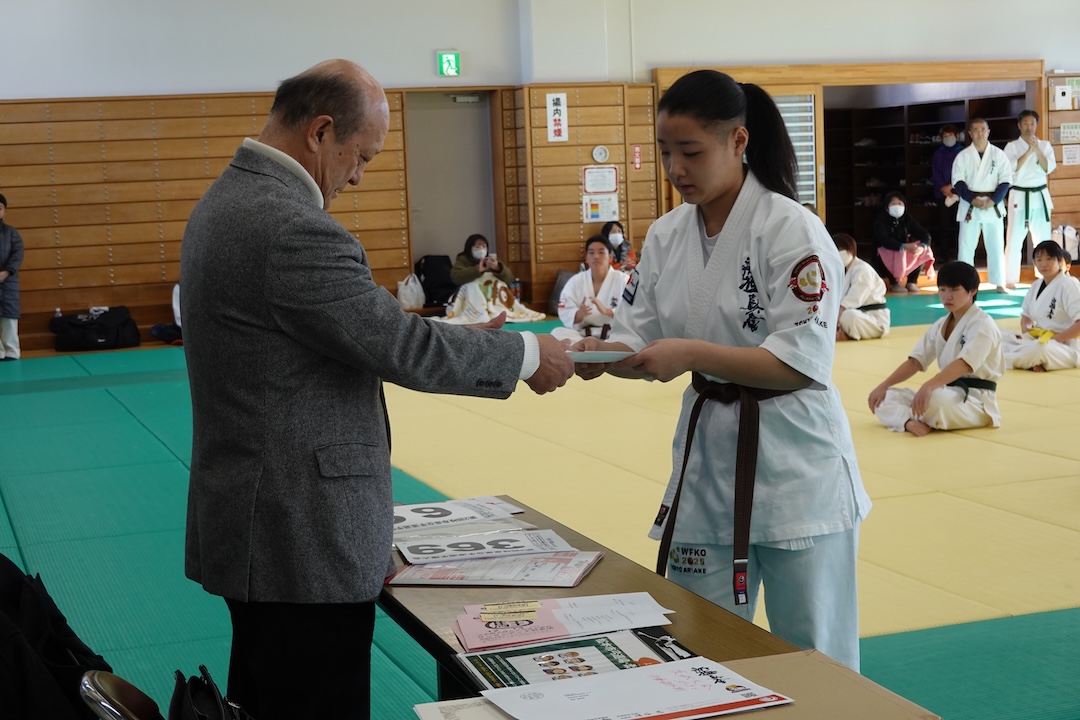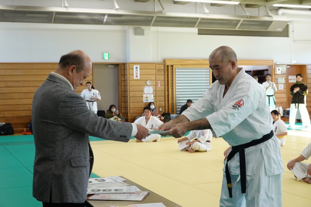 審査に先立ち、来週12/14に開催される岐阜県大会、茨城県大会へ出場する選手たちへゼッケンが渡されました。