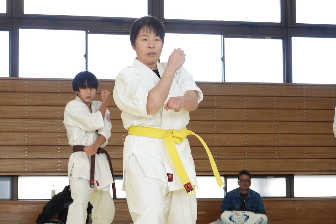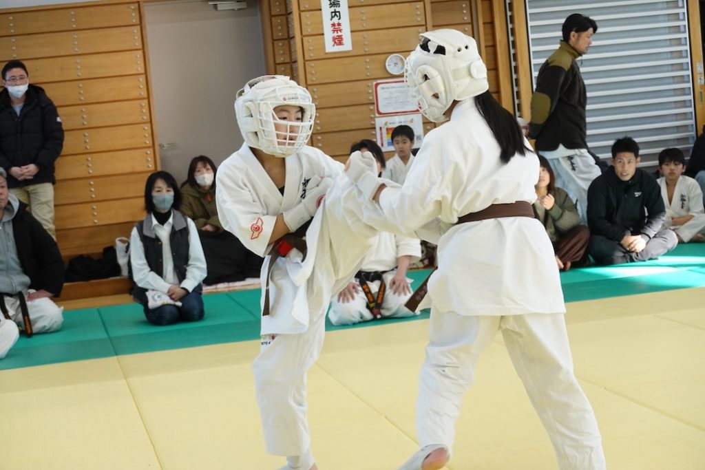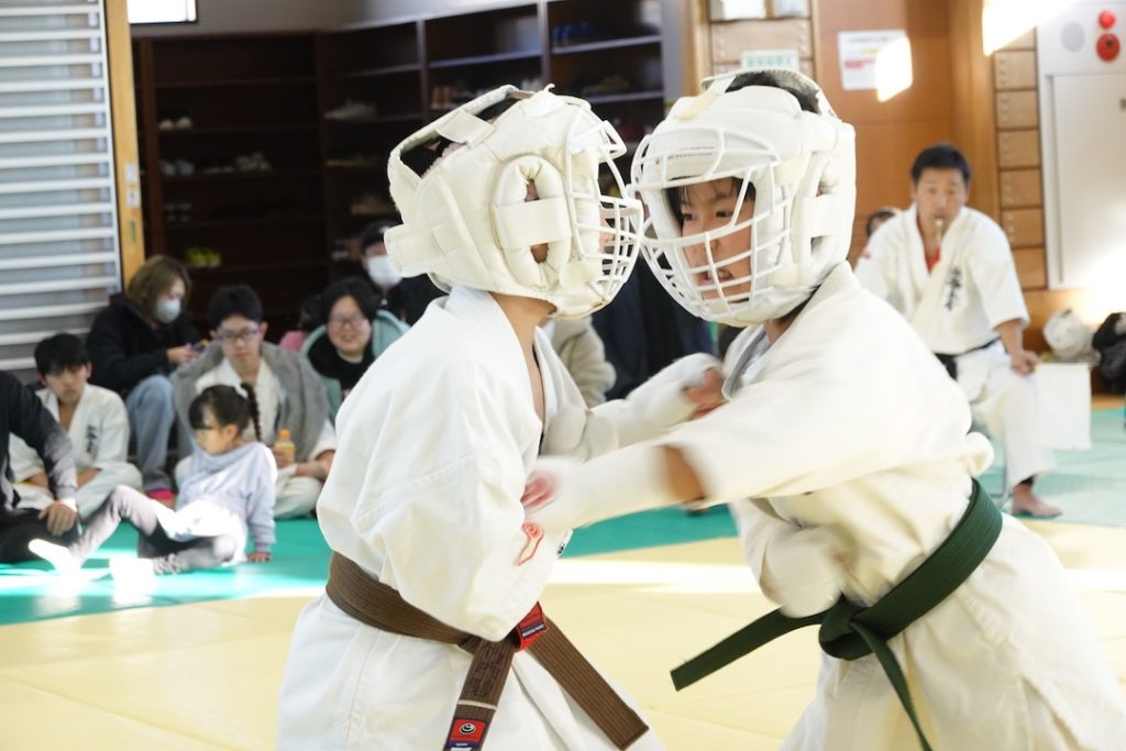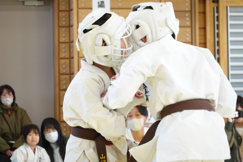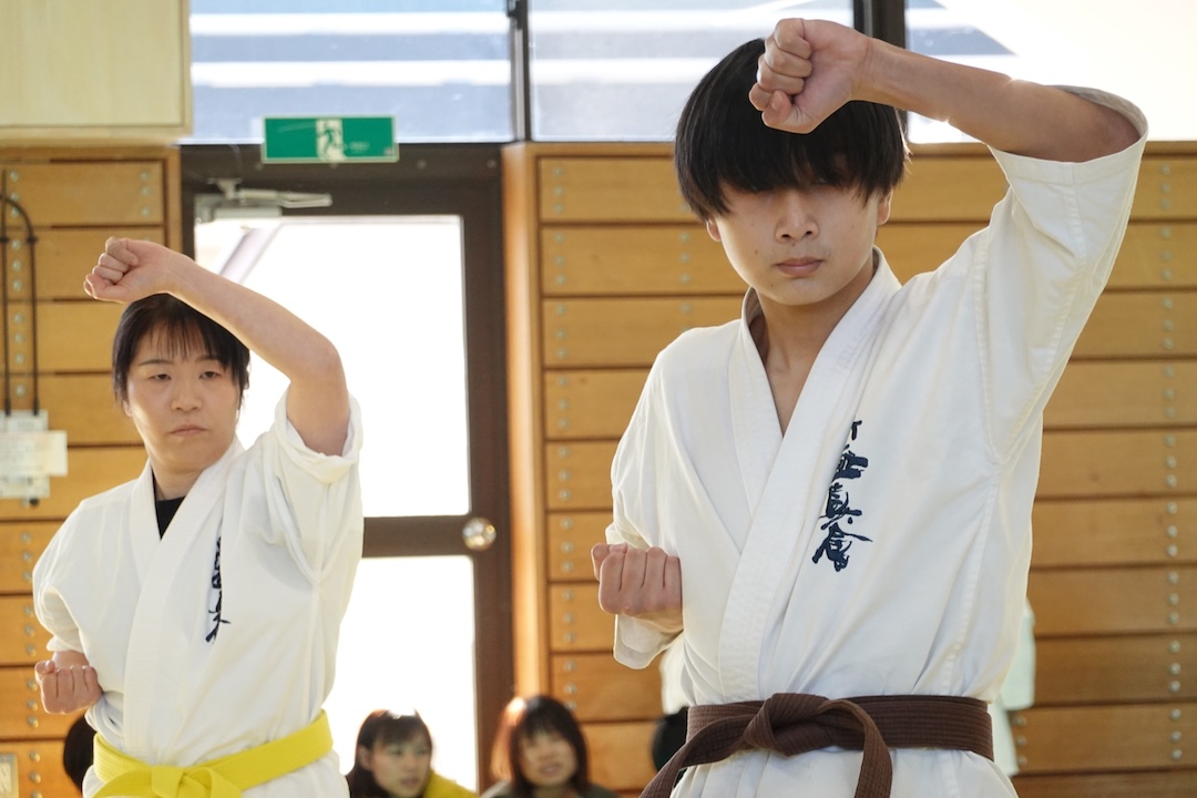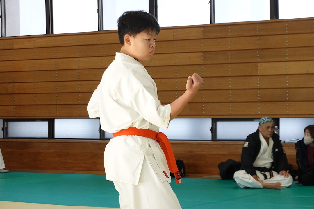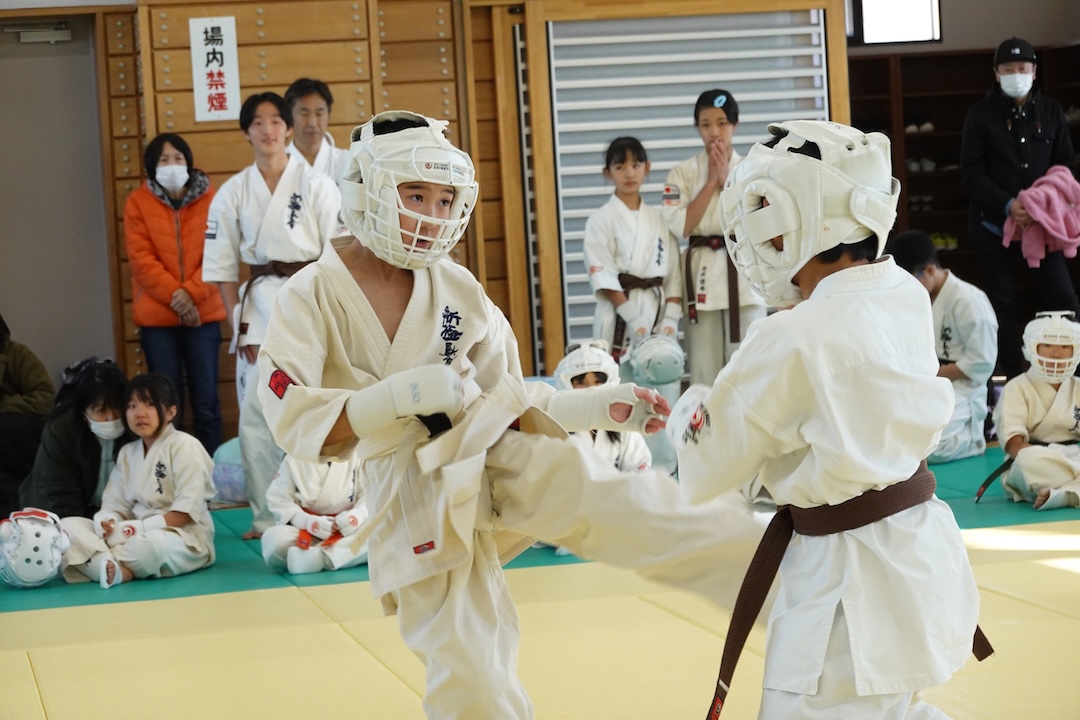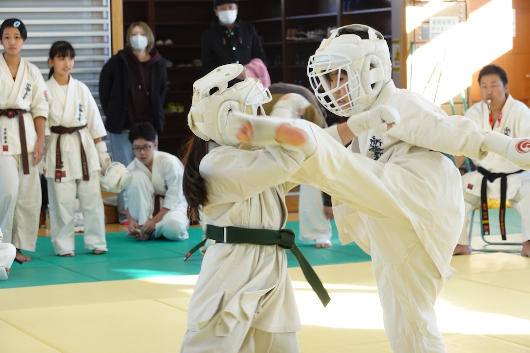 二人は日々の稽古の成果を存分に発揮、藤森玄毅は重量級らしい重厚な組手で、竹内碧は十分なスタミナを活かし、手数、足を最後まで止めることなく10人組手を完遂しました。