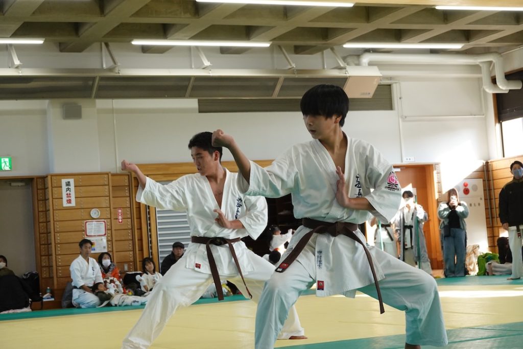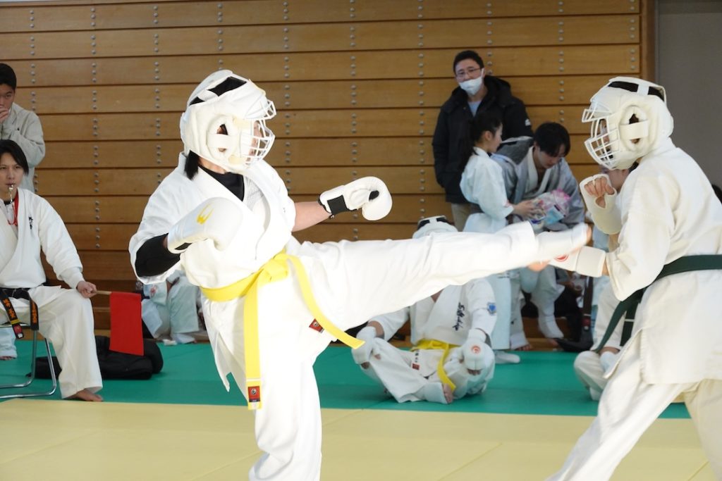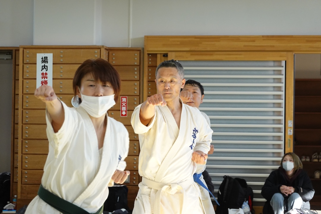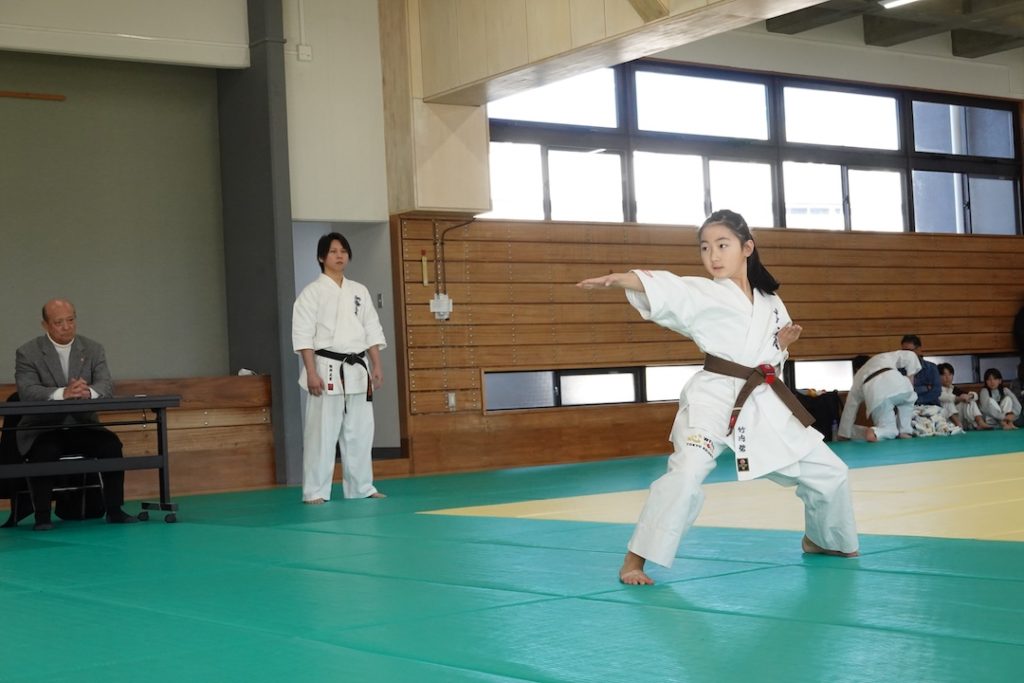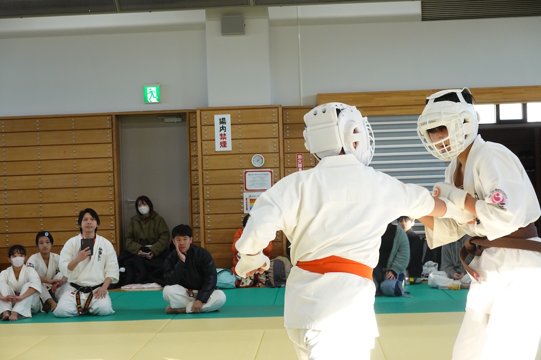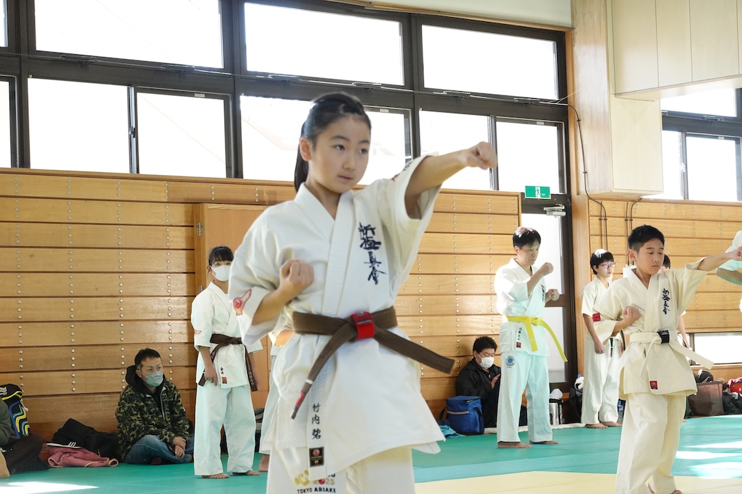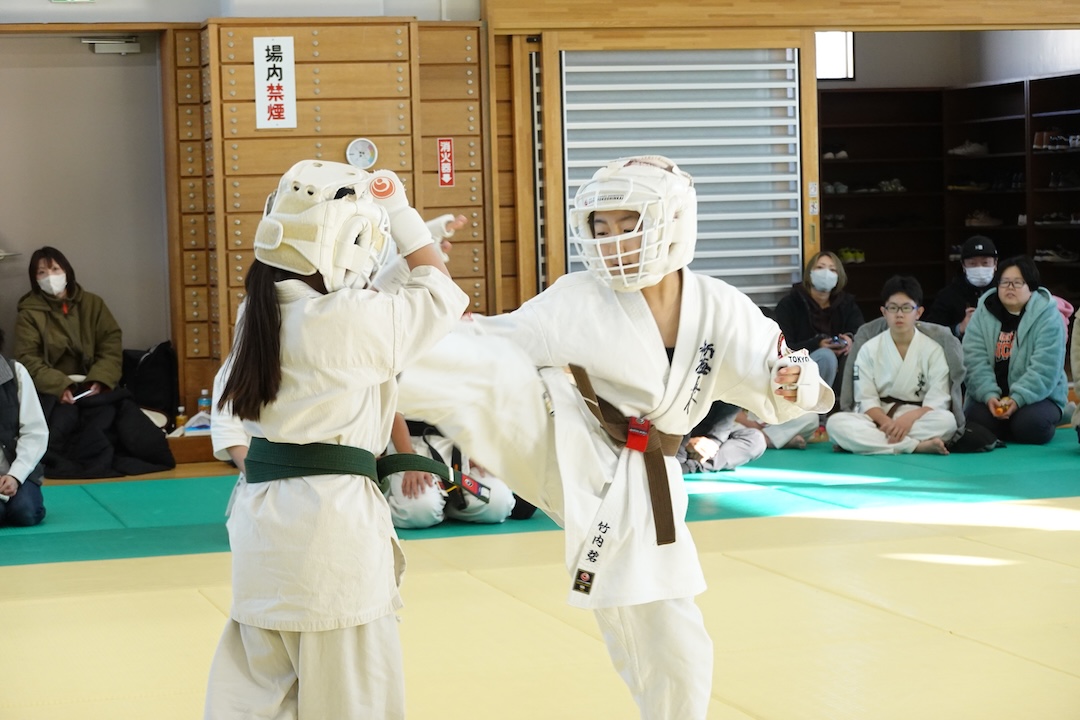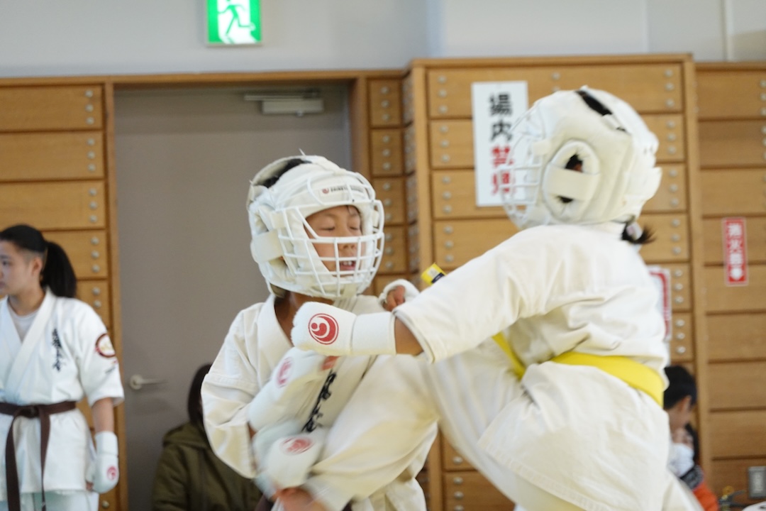二人は日々の稽古の成果を存分に発揮、藤森玄毅は重量級らしい重厚な組手で、竹内碧は十分なスタミナを活かし、手数、足を最後まで止めることなく10人組手を完遂しました。