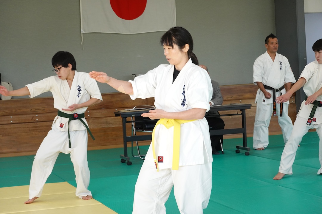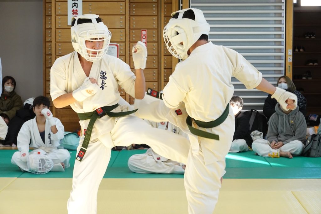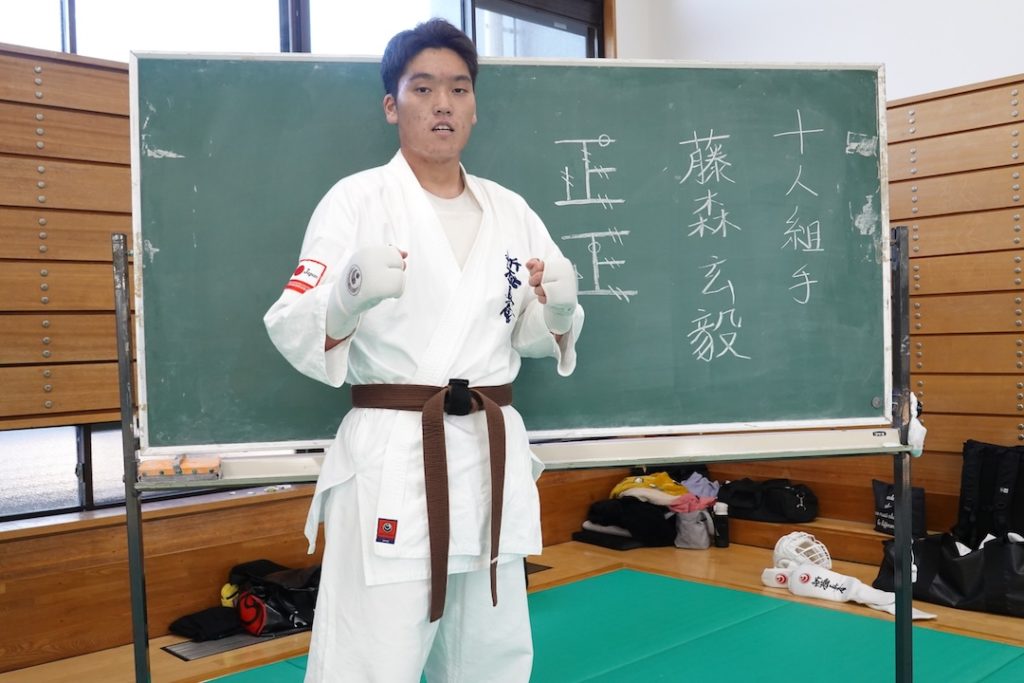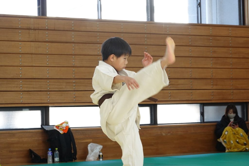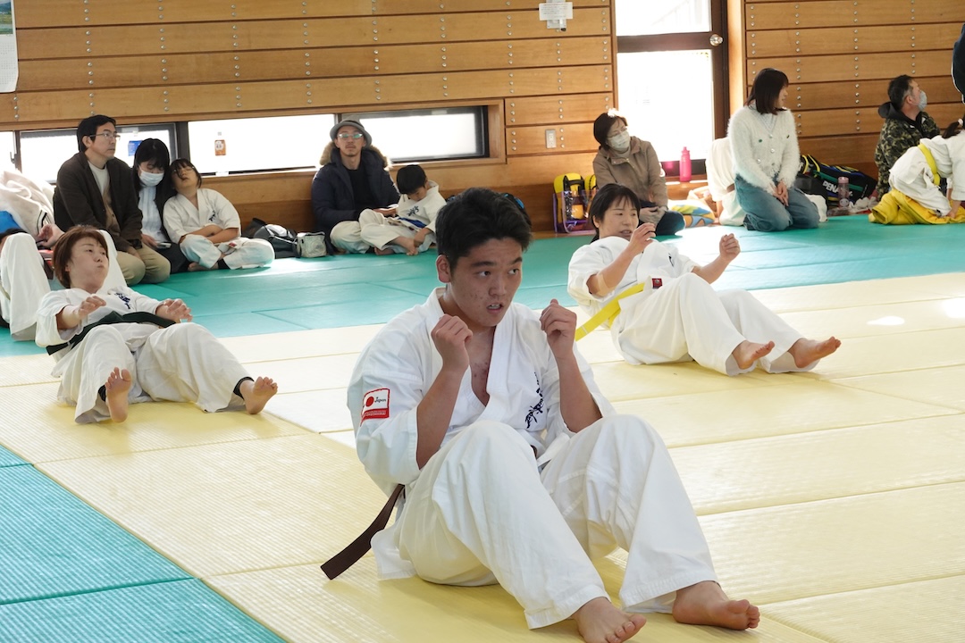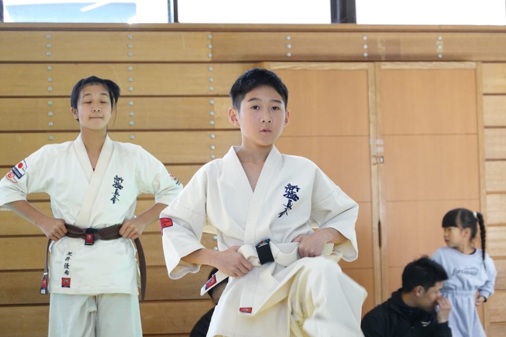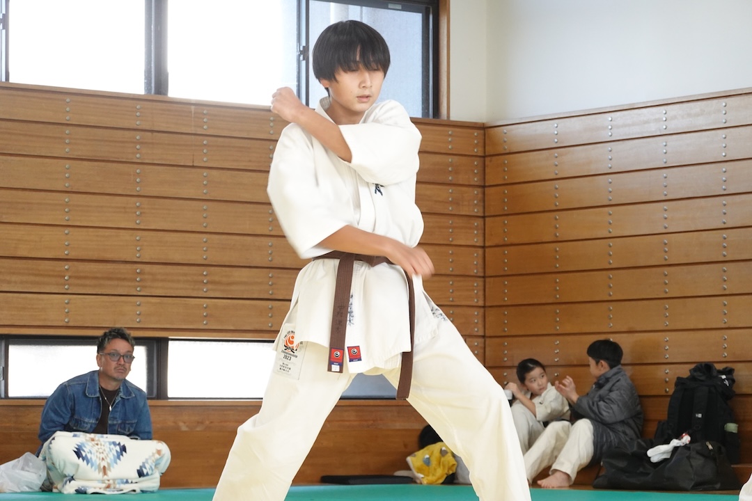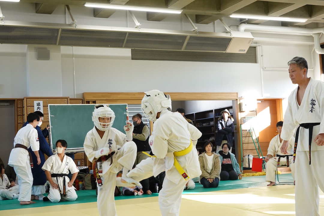 二人は日々の稽古の成果を存分に発揮、藤森玄毅は重量級らしい重厚な組手で、竹内碧は十分なスタミナを活かし、手数、足を最後まで止めることなく10人組手を完遂しました。