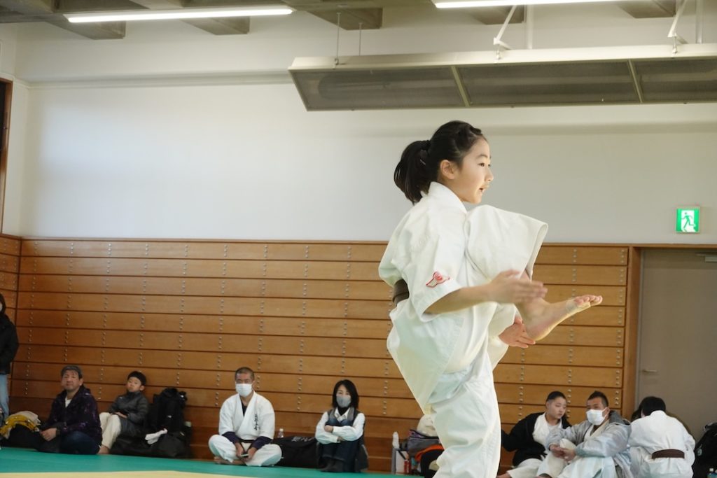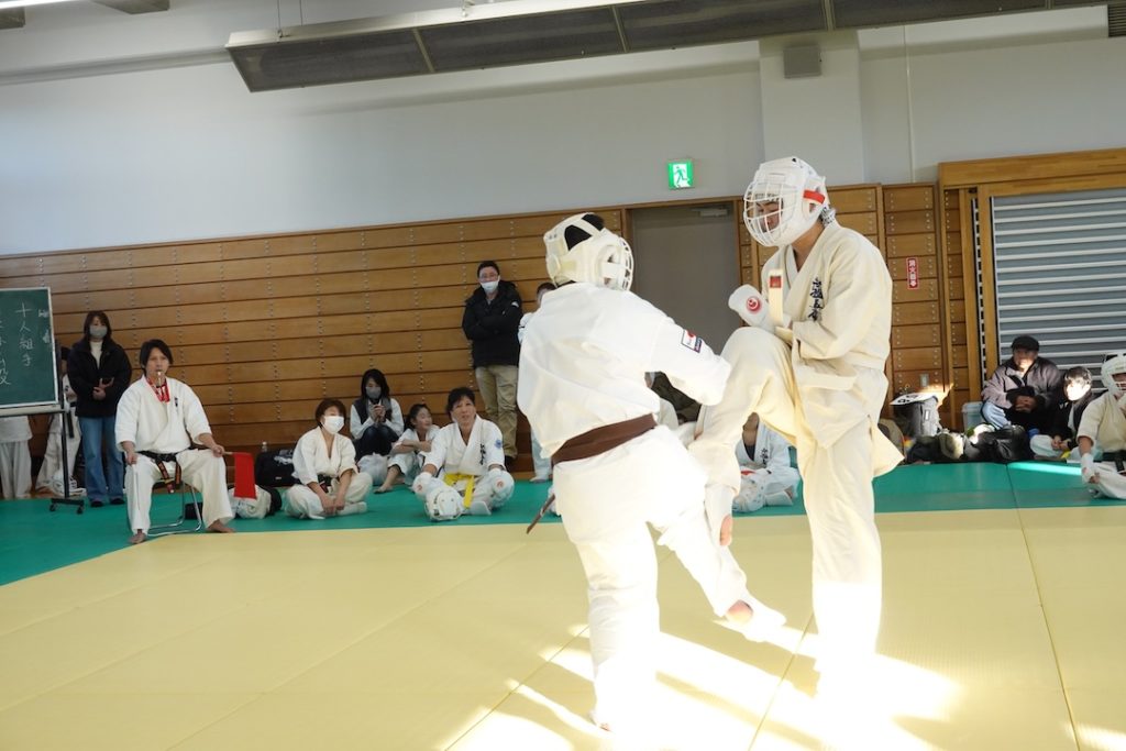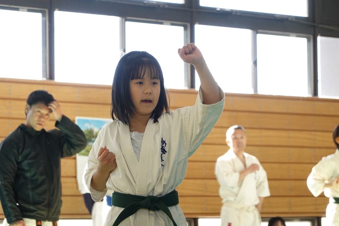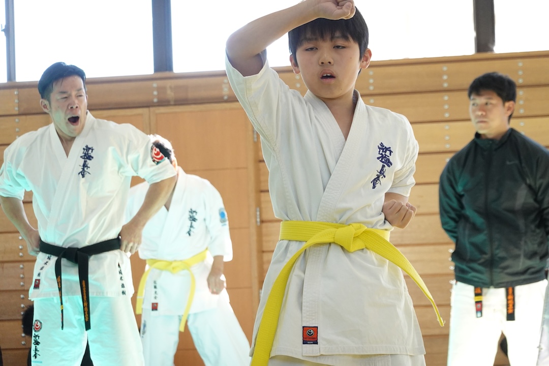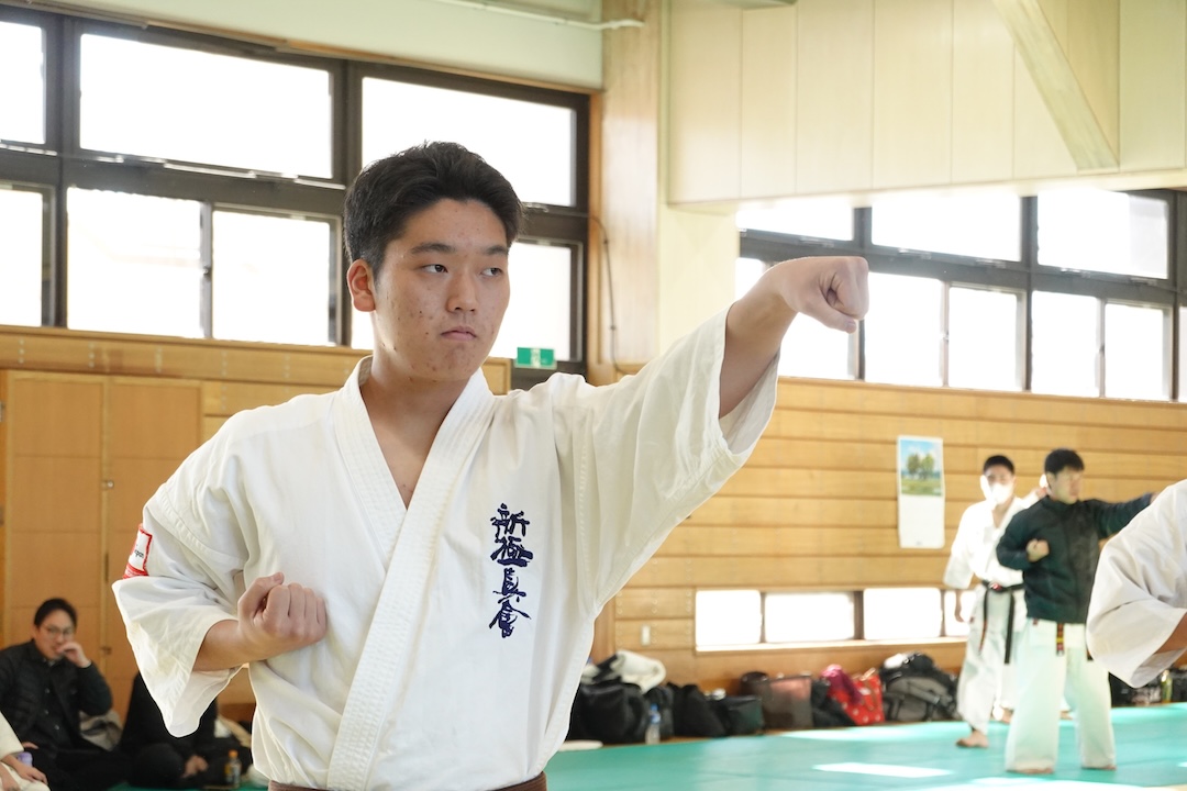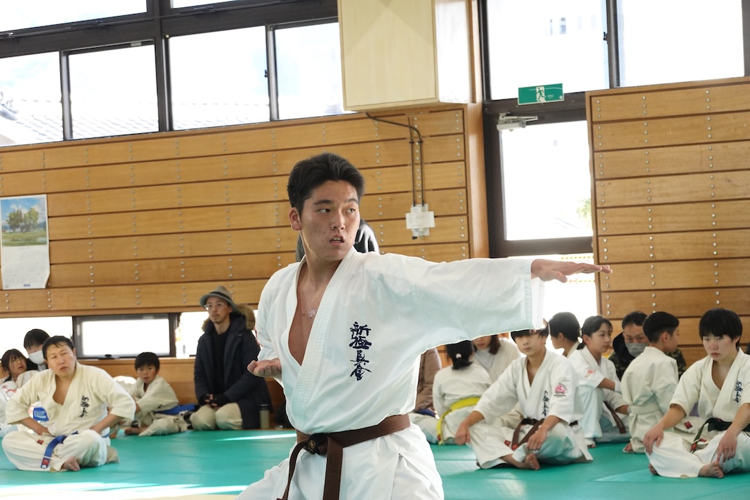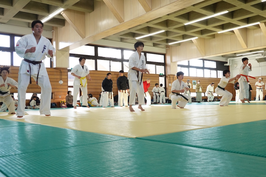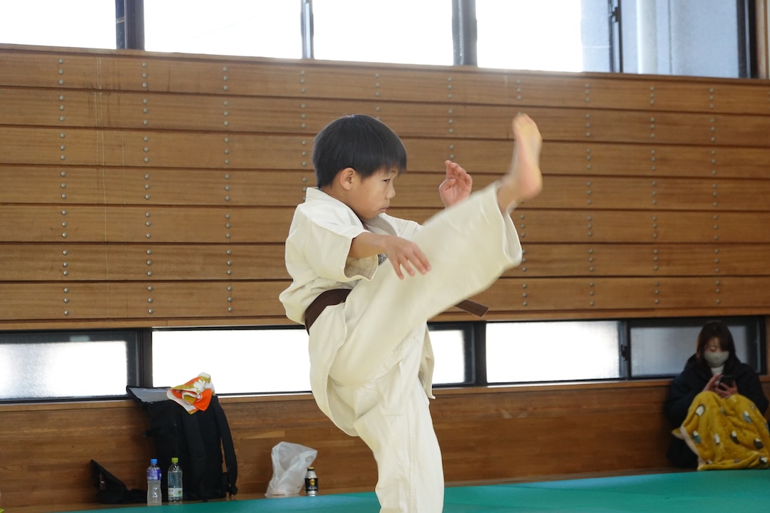 二人は日々の稽古の成果を存分に発揮、藤森玄毅は重量級らしい重厚な組手で、竹内碧は十分なスタミナを活かし、手数、足を最後まで止めることなく10人組手を完遂しました。