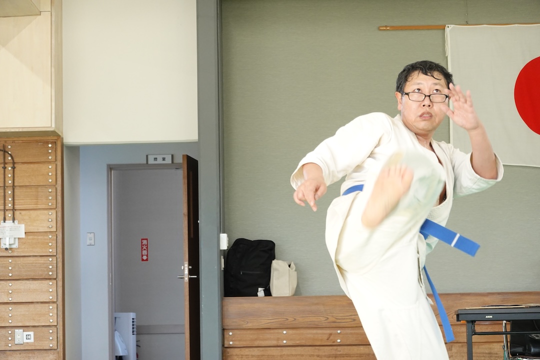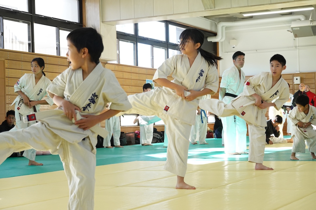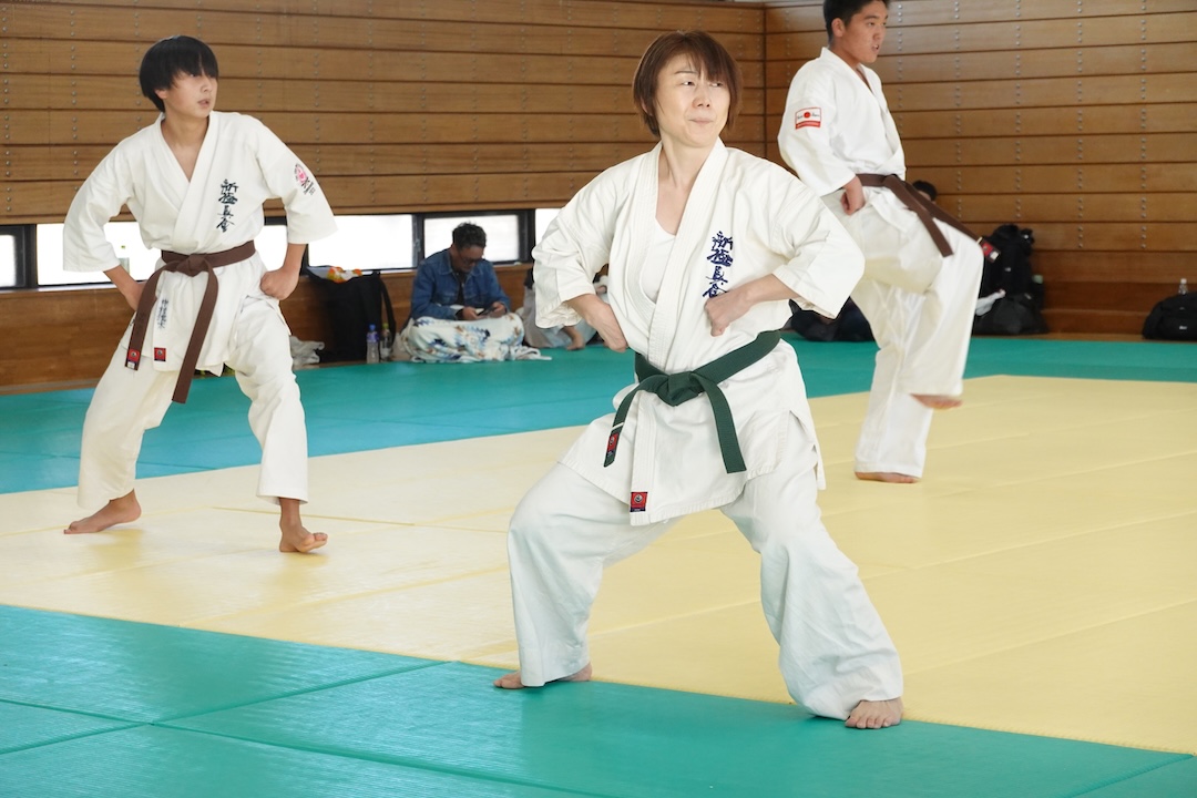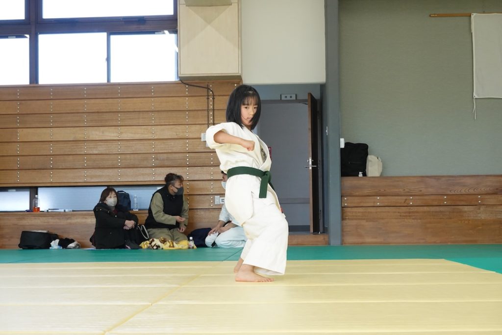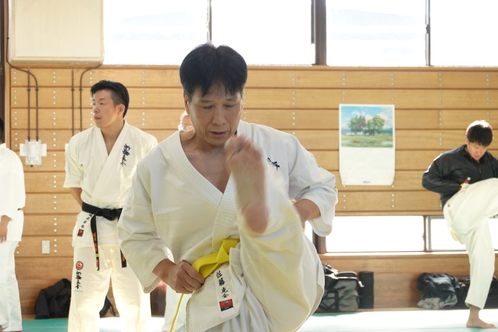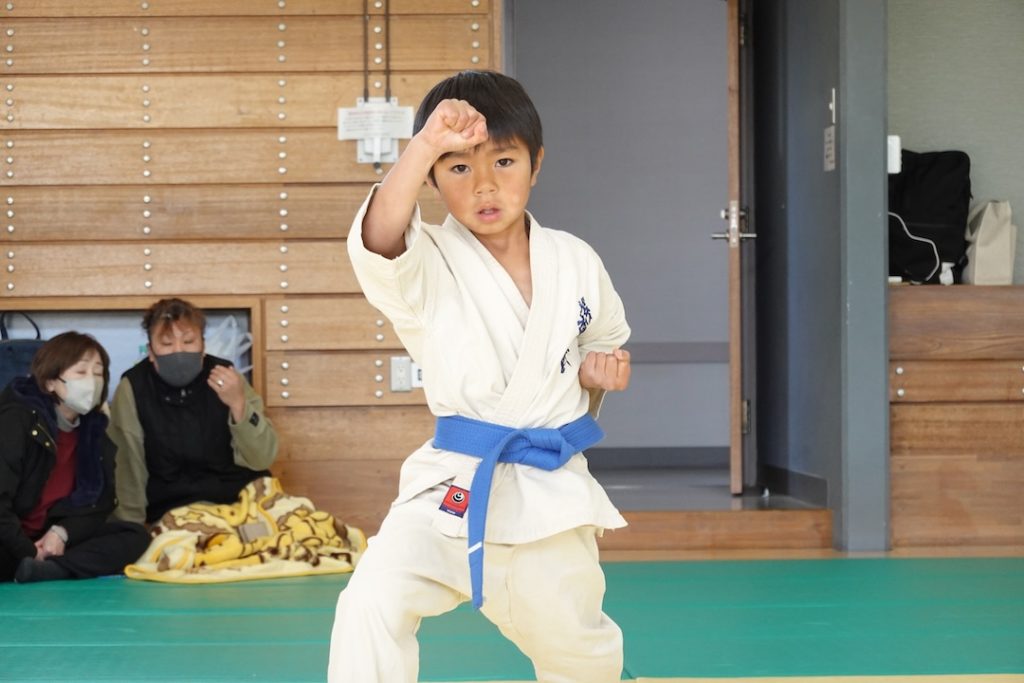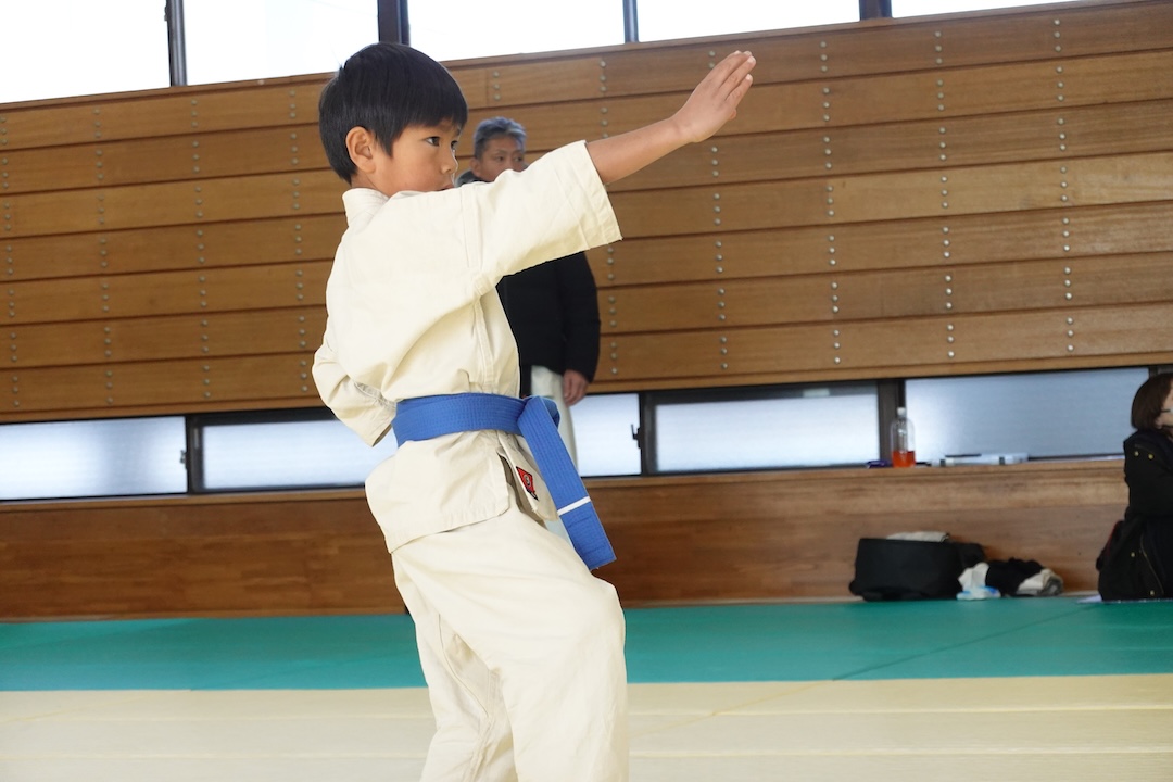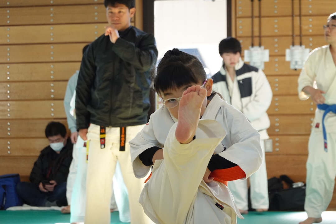 二人は日々の稽古の成果を存分に発揮、藤森玄毅は重量級らしい重厚な組手で、竹内碧は十分なスタミナを活かし、手数、足を最後まで止めることなく10人組手を完遂しました。