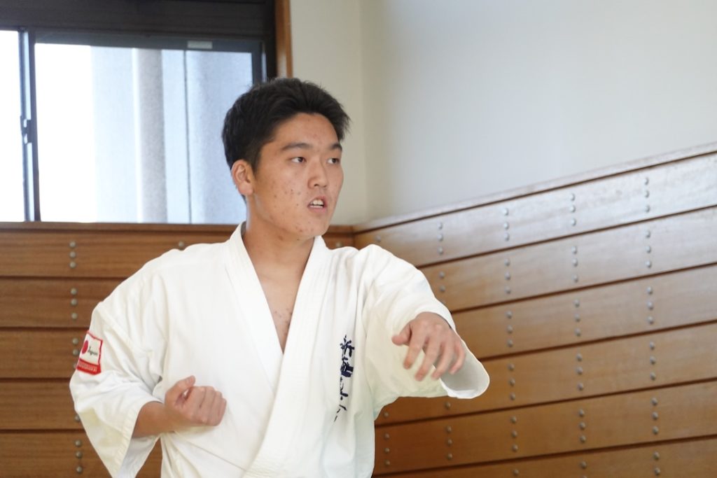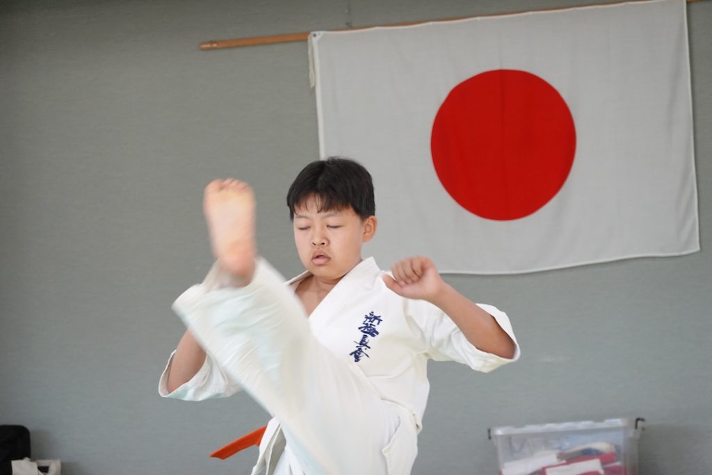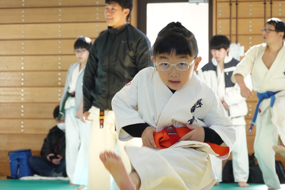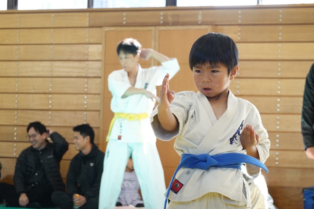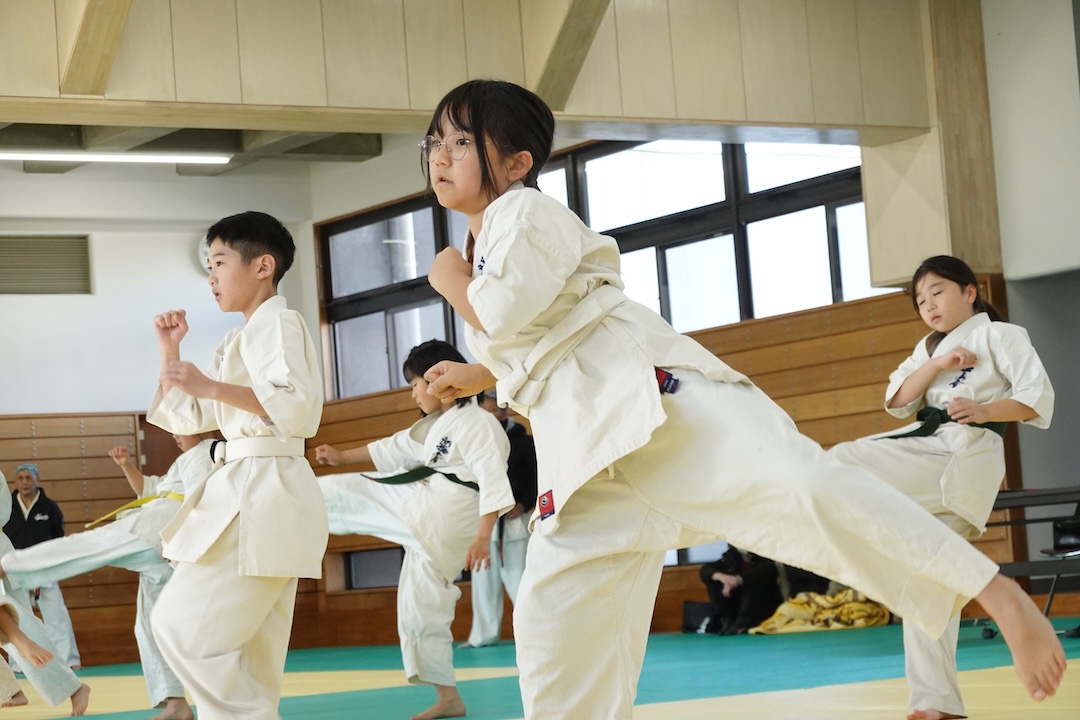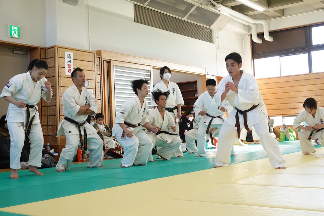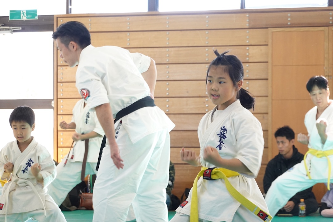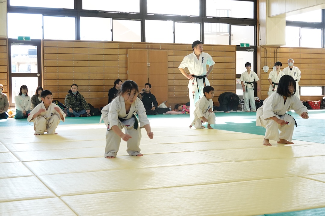 二人は日々の稽古の成果を存分に発揮、藤森玄毅は重量級らしい重厚な組手で、竹内碧は十分なスタミナを活かし、手数、足を最後まで止めることなく10人組手を完遂しました。