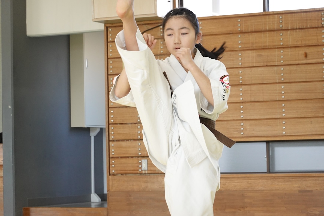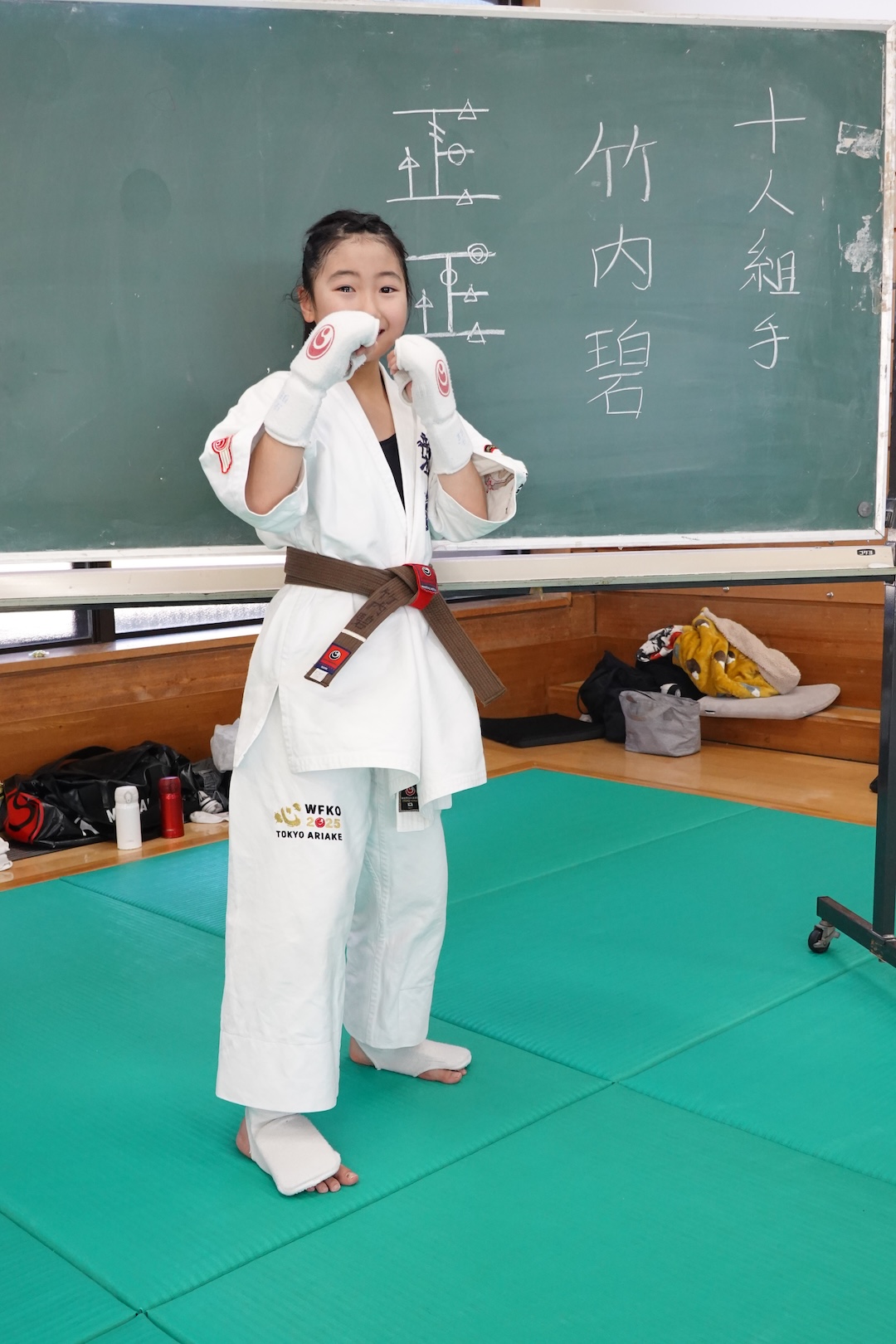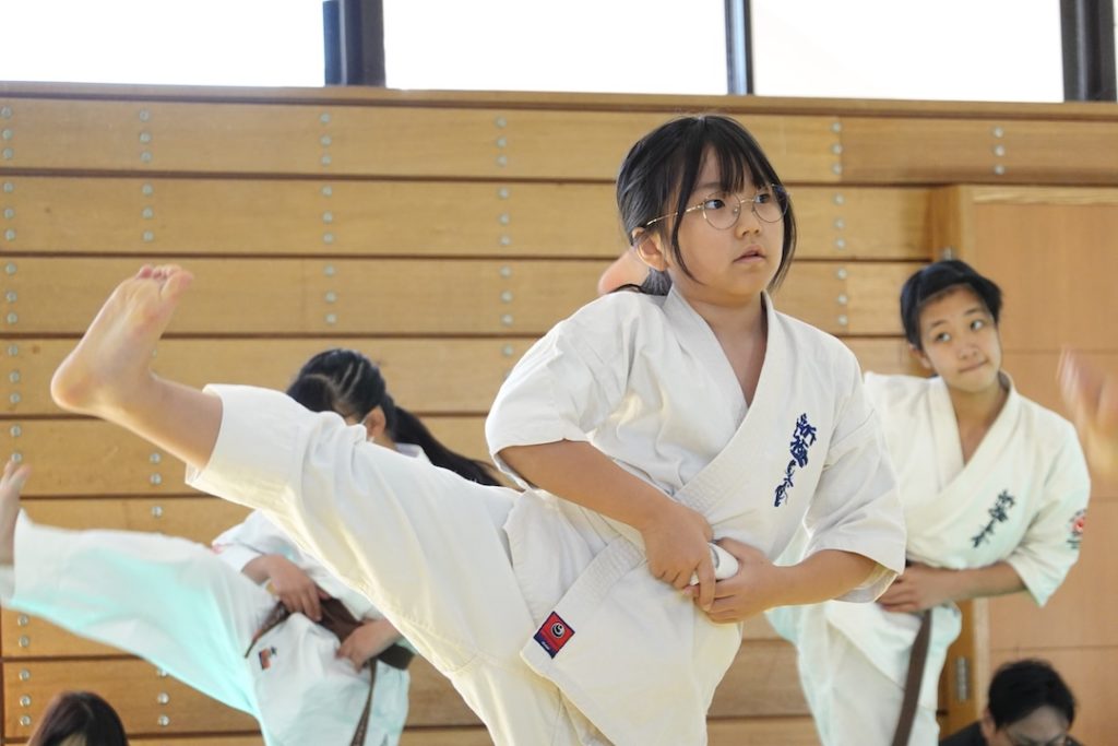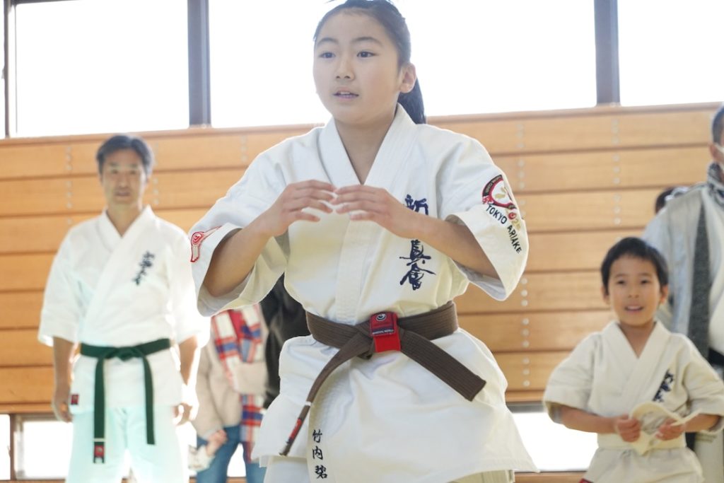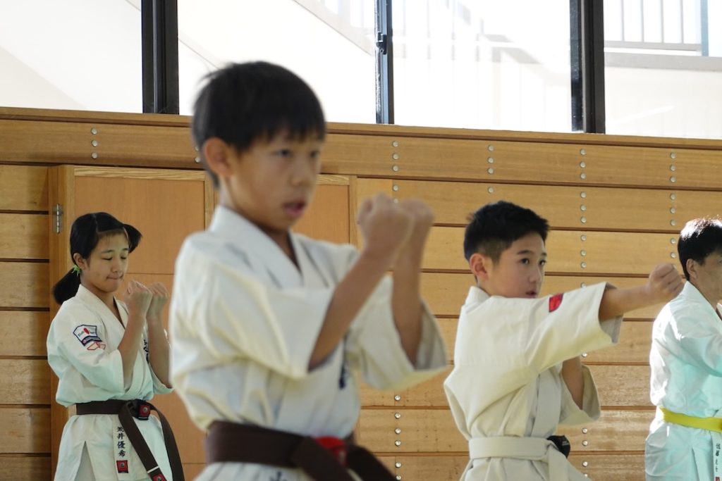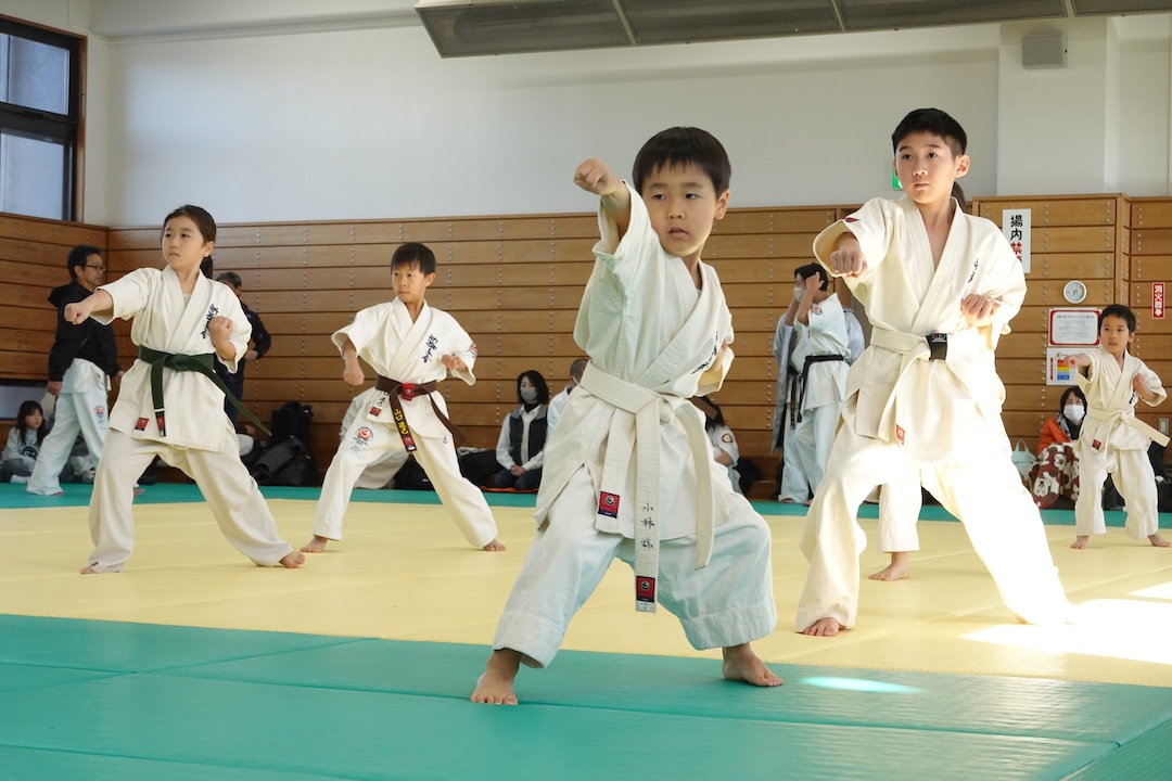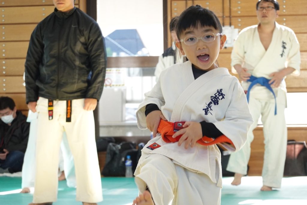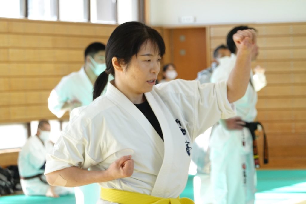 二人は日々の稽古の成果を存分に発揮、藤森玄毅は重量級らしい重厚な組手で、竹内碧は十分なスタミナを活かし、手数、足を最後まで止めることなく10人組手を完遂しました。